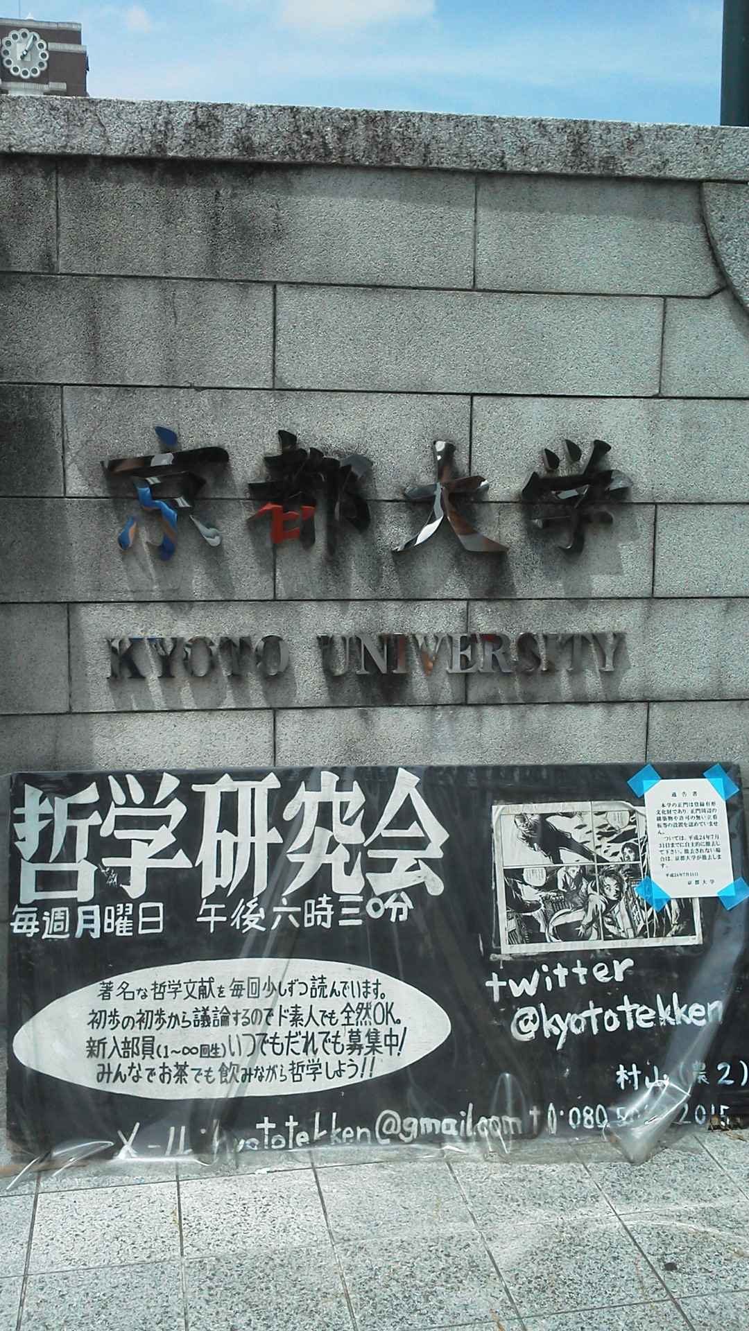京都大学の正門で写真を撮って見た... 哲学を勉強する人を募集しています...