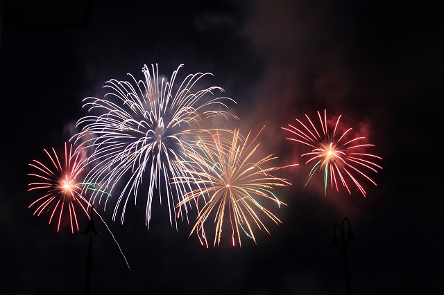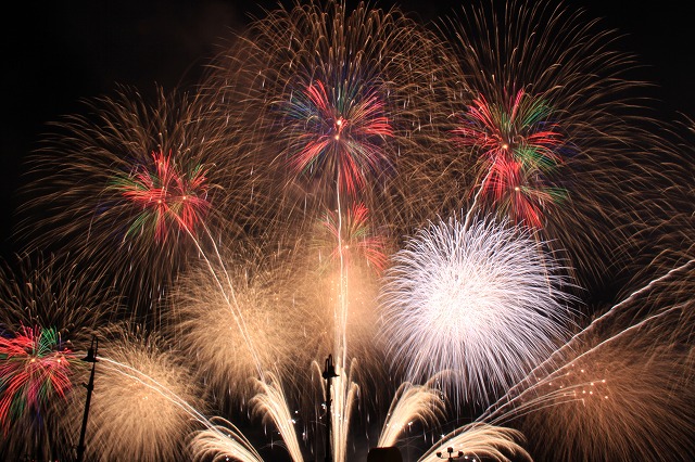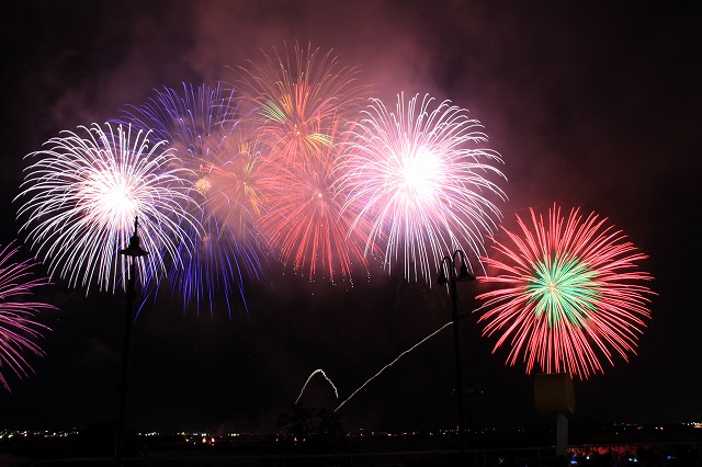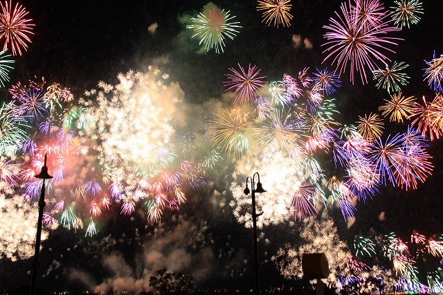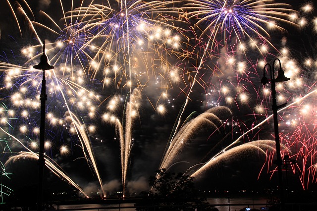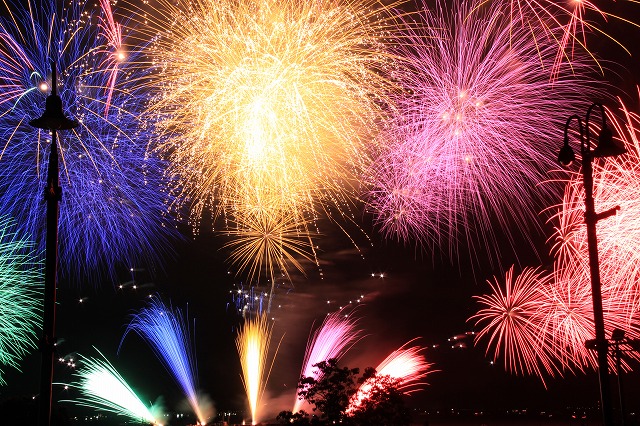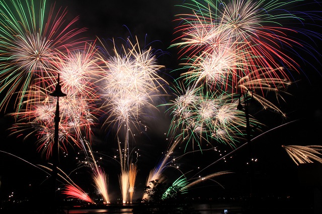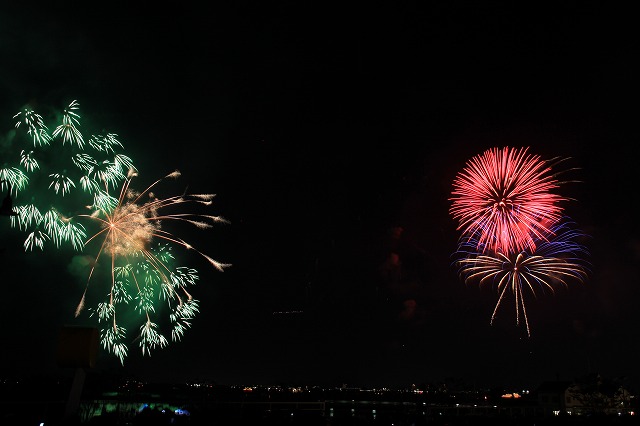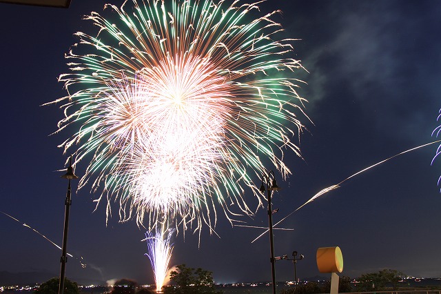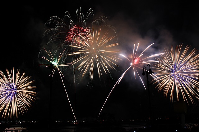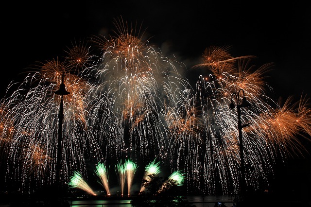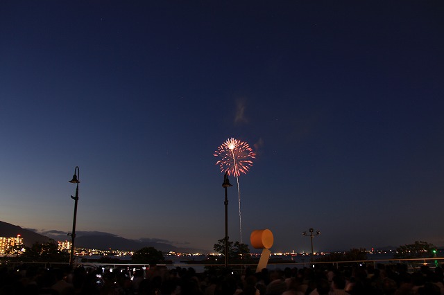 打ち上げ場所が湖上で、かつ複数個所から上がり、