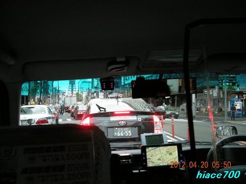 朝早いのでタクシーに乗る