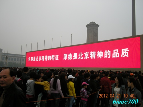 「うーん、20万人........、天安門広場の真ん中で不謹慎だとは思うけれど、事の真偽は別として南京事件で虐殺された人が、30万人とも40万人とも中国は言っているが、ここに爆弾が落ちたら20万人。近くを歩く人も入れたら40万人。何か大した数ではない気がしてきた」