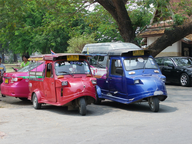 こいつらは、バンコクの北にある有名な観光地、アユタヤで見つけたトゥクトゥク。
