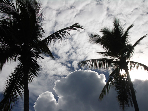 見上げると、椰子の木と雲。