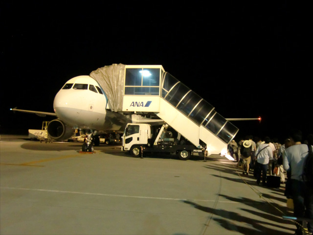 那覇空港も、まずはタラップで地上へ。