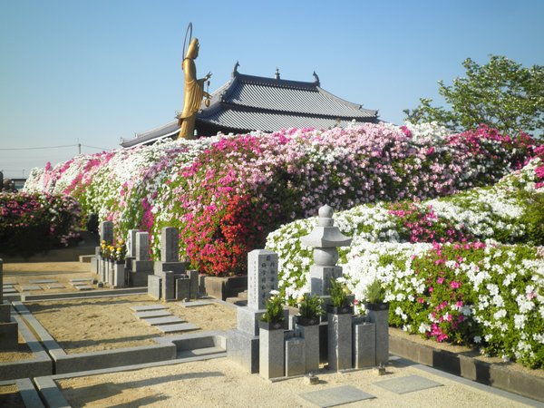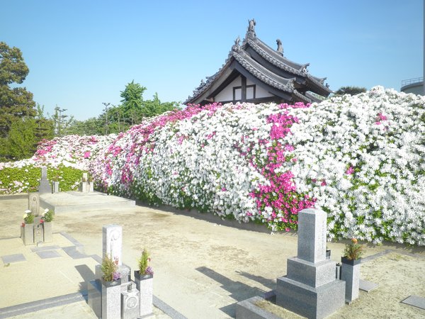 伽藍西側には墓地がありますが、そこから見ても素晴らしいツツジ。まさにツツジウォールですね。