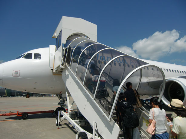 バスを降りたらタラップ。