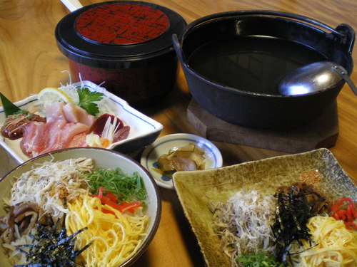 空港から名瀬(島の中心街)に向かう途中にある、「鶏飯 ひさ倉」に寄って遅めの昼食。