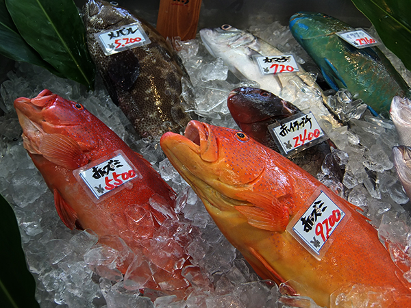 바다의 역에 늘어놓을 수 있었던 물고기.