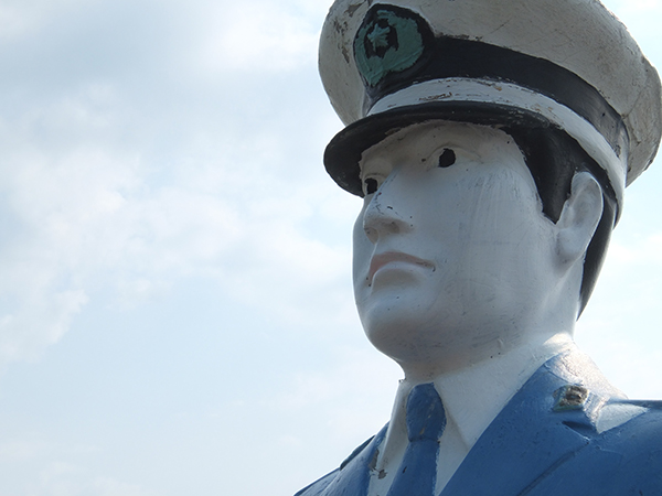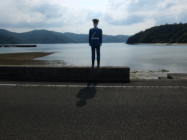 초등학교의 앞에서, 돌연 나타난 사람의 그림자.