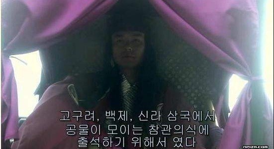 자막해설 : 고구려, 백제, 신라 삼국에서 공물이 모이는 참관의식에 출석하기 위해서였다.