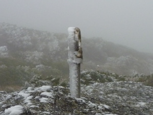 雪山の山頂にある観測用鉄杭