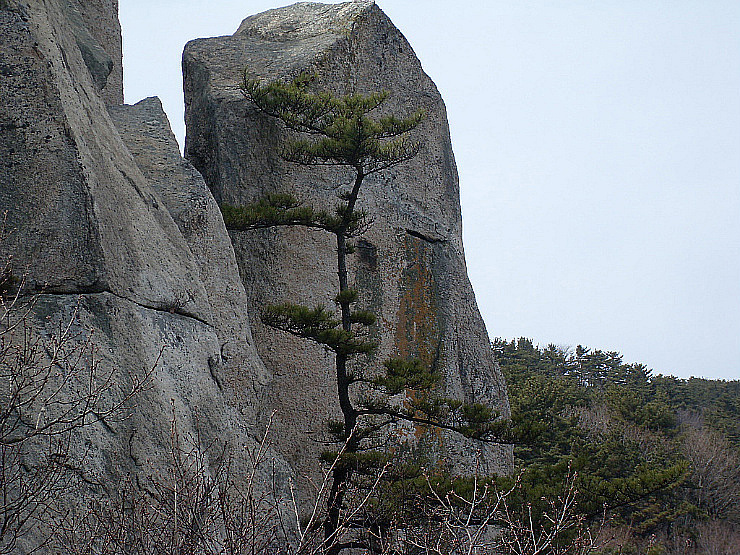 奇岩が累積して翠松がうっそうとして別世界に遊ぶようだ