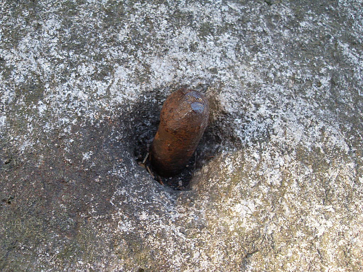 山頂付近で浸食防止や補強の為に打たれた鉄の杭
