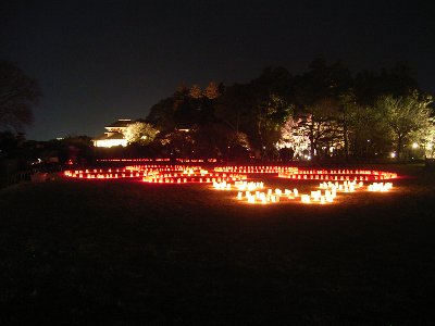 芝生の広場ではキャンドルが並べてありました。