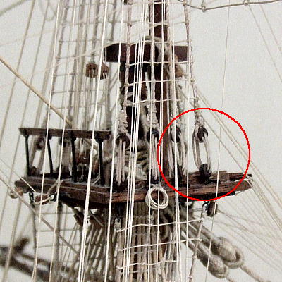 その当時、100年昔から使われていたデッドアイ滑車(下図)方式の船もまだまだ多かったんだけどね。
