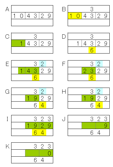 九章算術に載っている手法は、この手法より一段多いマス目を使いますが、原理はこれと同じです。