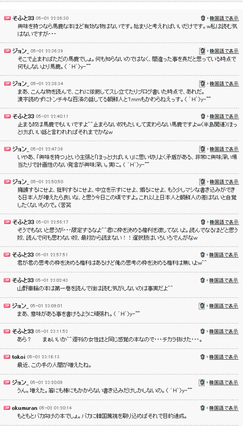 이런 것을 가지고, 보수라든가 애국이라든가라고 한다면, 그런 몬 필요 없어요.( ′H`) y-~~
