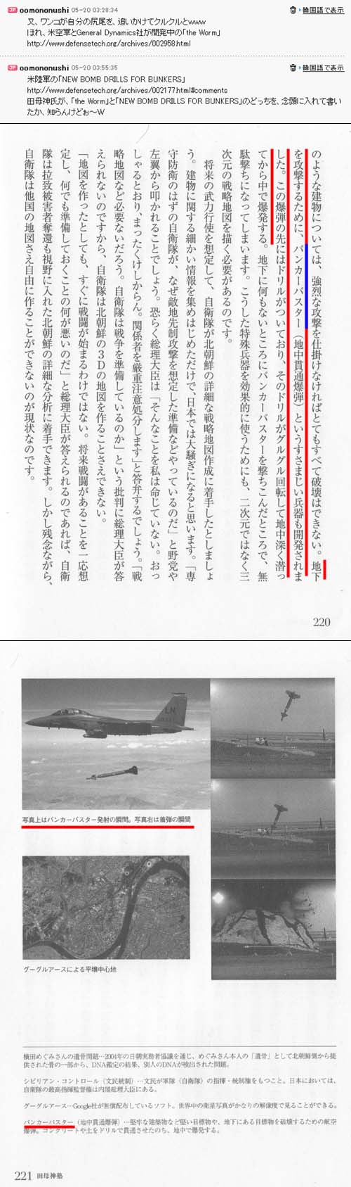 동페이지 오른쪽의 「탄착의 순간」이라고 여겨지고 있는 것은, 「뱅커 버스터」가 아니고, 유도식의 통상 폭탄 「페이브웨이」근처일 것입니다만―···(뱅커 버스터는 본체가 똥길구나.오른쪽의 사진은 짧구나) 「뱅커 버스터 착탄의 순간」이라고는 쓰지 않은, 뭐라고 하는 녀석 냄새난 변명을 하는 바보도 있을지도 모르기 때문에 놓쳐 주었어···