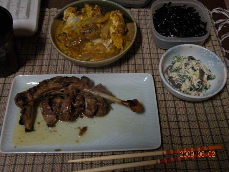 오늘 밤은, 오프로 해 변하지 않았던 닭(친계), 고등어 된장캔과 양파를 익히고 계란으로 풀어 덮은 것, 사 온 흰 참깨 버무림, 형(오빠)에게 받은 「주물 매단다」.