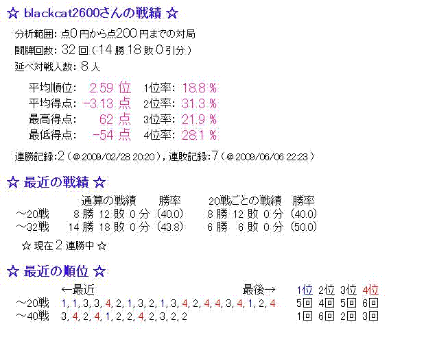 꽤 좋은 성적입니다.나에게 져 넘어와 검은 고양이씨와의 대전 성적이 완전한 5분.라보에는 크게 이겨내고 있는데, 점수 승부에서는 왜일까 지고 있습니다.