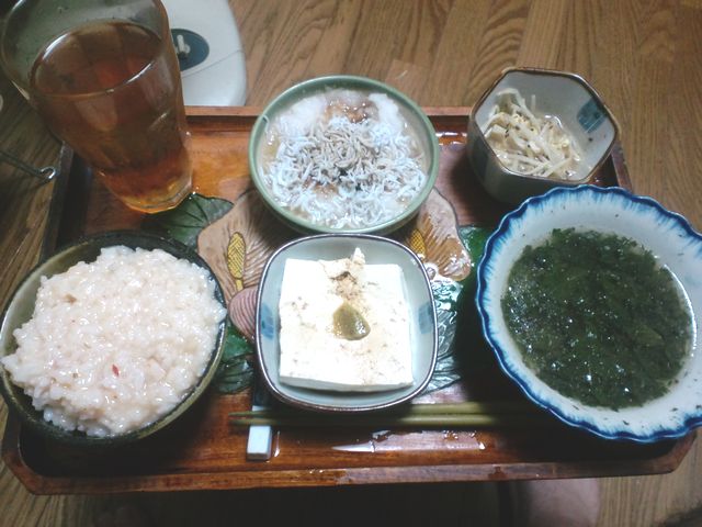 対照的に貧しいボクの晩ご飯。つか、手抜き。