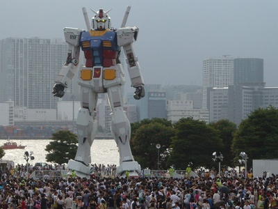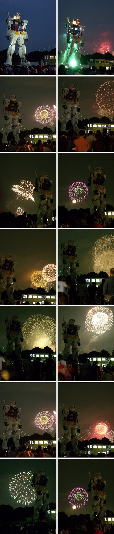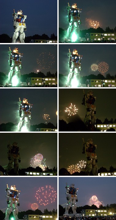 音楽が鳴り、ガンダムが動き出すと同時に花火が打ち上がり歓声が上がりました。