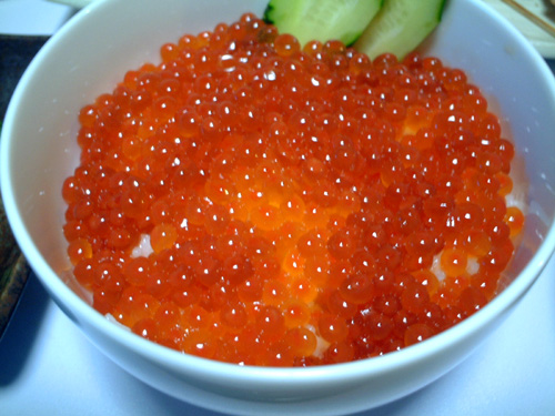ごはんが見えないイクラ丼( ´H`)y-‾‾
