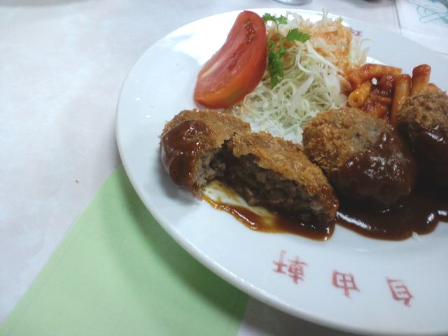 ( ´H`)y-‾‾ぶっちゃけ、あえてここ選んだのはこのミンチカツ食うため。いや、洋食でミンチカツという条件でボクの知ってる範囲でネタになりそうなのここしか思いつかなくて。