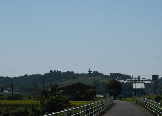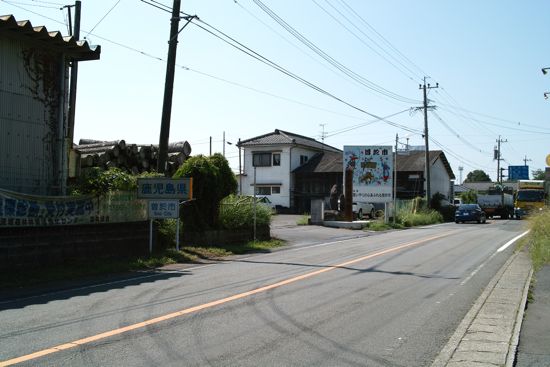 鹿児島にはいると道が山道になってきます。切り通しの向こうに町が見えてきました。