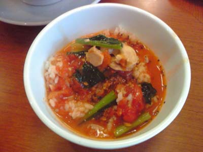 連休で飯処が少なく、暇にあかせてさまよった挙句『太陽のトマト麺』なる看板を見つけて入る。ゲテモノ覚悟ネタ覚悟だったが、意外と鳥出汁トマトスープは悪くなく、麺も細いパスタ風。追加でラーメンリゾット(ラーメンスープを使った汁かけご飯)を頼む。鳥のから揚げも売りらしいので頼んでみたが、こちらはいまいち。