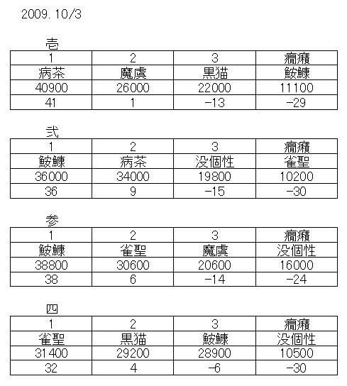 3456 昨晩の結果 董젯 2009-10-04 1563 0