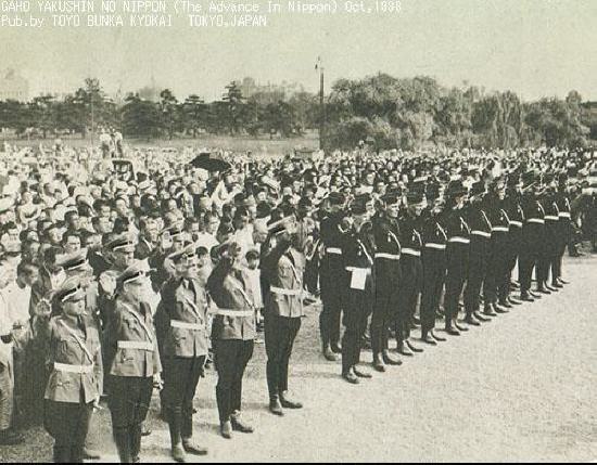 히틀러 유겐트 환영식. 뒤 쪽에 일본인들이 보인다.