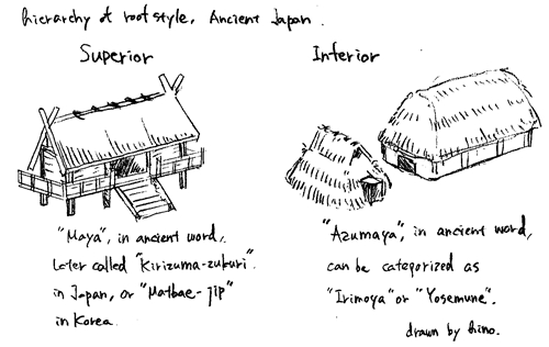 지붕 형식에 대한 가치관의 토픽에 관련한 화제를 조금. 우선 그 일본으로의 선사시대의 변천을 복습 해 두자.