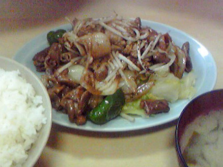 ホルモン野菜炒め。最強の定食、ウインナー炒め定食も捨てがたいですが。