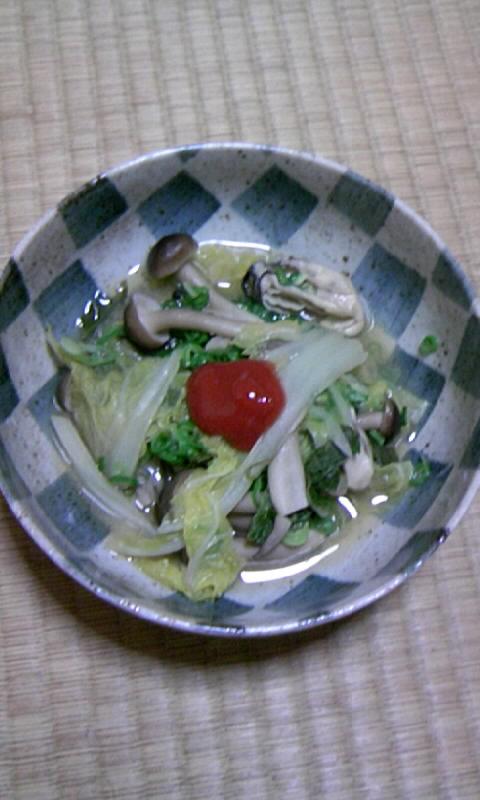 牡蠣鍋にケチャップを合わせてみた。ケチャップの酸味が牡蠣の生臭さを消し、意外な美味さを・・・