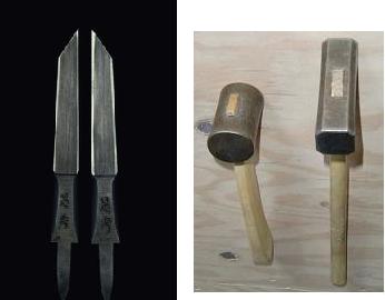 彼らは木材を加工する仕事をするから、使う道具は鋸、ノミ、鉋など、一般の大工職の使う道具も使うが、以下のような専門化した道具も使った。