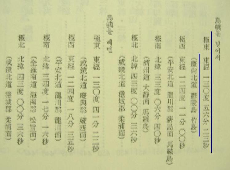 ■1899년 「대한 지지」 (대한제국의 최초의 지리의 교과서) (뜻)이유) 대한제국의 영역은, 북위 33도 15부~42도 25분. 동경 124도 30부~130도 35분. 타케시마(독도)는 동경 131도 52부입니다. 즉, 「울릉도까지가 한국의 영토」 (이)라고 단언하고 있습니다! 1899년은 시모노세키조약의 4년 후, 을미 보호 조약의 6년전, 자주(잘) 확인해 보면, 몇번이나 「일본해」표기까지 되고 있습니다 w 게다가 더욱 1907년의 「대한 신치잡지」에서도 같은 일이 쓰여져 있습니다. ■1947년 「조선 상식 문답」최남선(한국의 상식 Q&A) (화상은 복각판) 한국의 영역은, 동경 124도 11부~130도 56분 23초로 써 있습니다! 반복합니다만, 타케시마(독도)는 동경 131도 52부입니다. 게다가게다가게다가 ■1948년 「조선 상식」(한국의 상식) 「한국의 가장 동쪽의 섬은 동경 130도 56부 23초의죽서(츄크드)다」라고 써 있습니다! ※츄크드(Chukdo)는 울릉도의 북동에 있는 작은 섬. ※한자로 「타케시마」라고 써 있는 것이, 츄크드(Chukdo, 츄크섬)의 일입니다.독도가 아닙니다. 독도는 어디에 갔어?? 이승만이마음대로선언할 때까지,대한제국및대한민국은 타케시마/독도의 영유 의식은 없었다.
