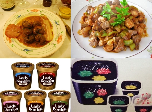 向かって左は子羊の睾丸とベーコン。右はトルコ料理で子羊の睾丸と肝臓。