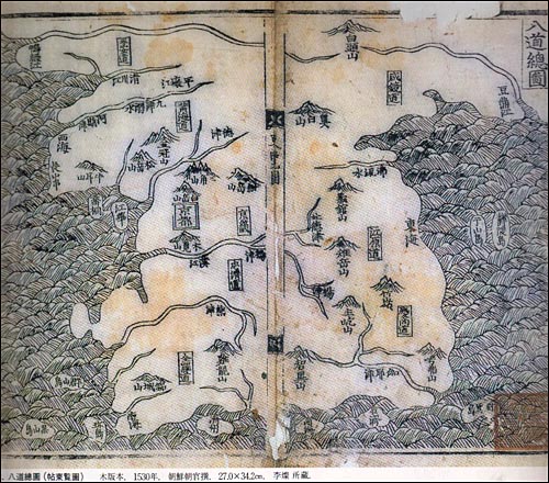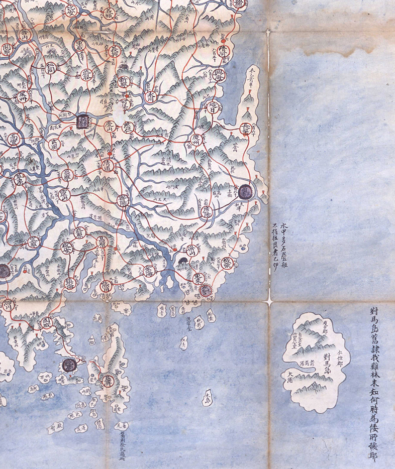 16c세기 신증동국여지승람의 팔도총도(新增東國輿地勝覽, 八道總圖)에 나오는 대마도