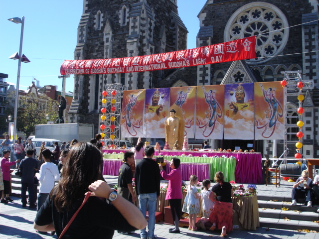 聖堂前で中国人たちの仏教祭りが開かれている...