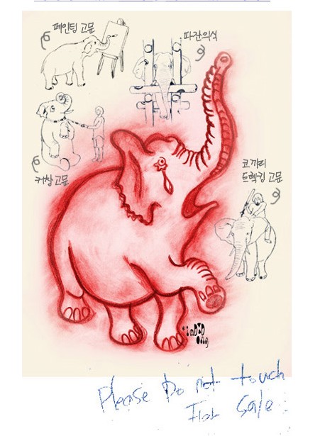 인간의 욕심에 의해 순응하게 길들여지고 있는 코끼리를,