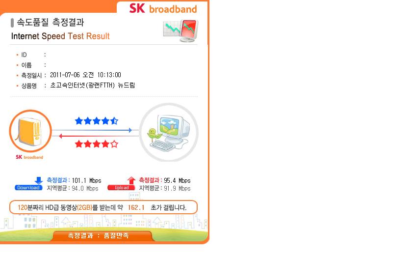 집에서 인터넷 속도 테스트 해봤는데요, 광랜쓰는데 속도가 최대로 안나오네요