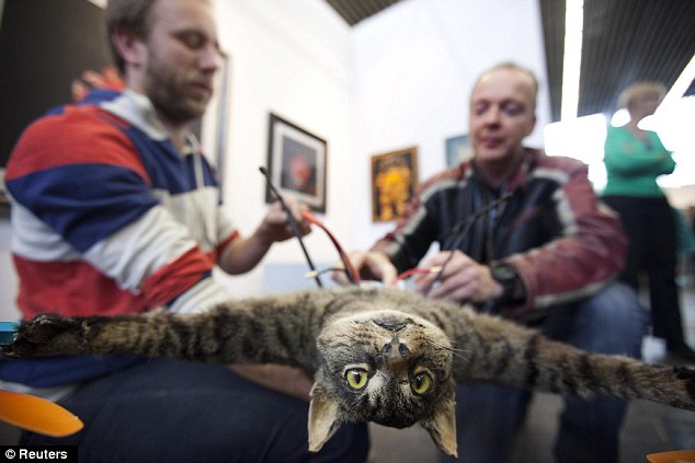 귀여워하고 있던 애완동물과의 이별을 받아 들여지지 않고, 박제로 하고 곁에 두는 주인은 잘 있습니다만, 이쪽은 죽은 집고양이를 무선조종의 헬리콥터로 해 버린 네델란드의 아티스트, 바트·쟌센.