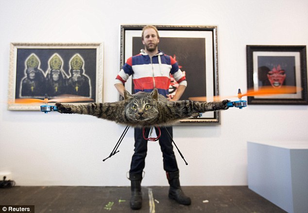 집고양이를 무선조종의 헬리콥터로 한 네델란드의 아티스트