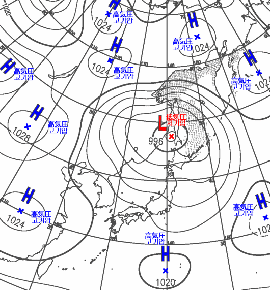 (2013년 4월 10일 오전 9시 예상 일기도. 2013년 4월 9일 발표.)