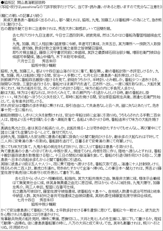 閑山島海戦@脇坂記 yasoshima 2009-01-21 12342 0
