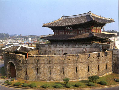 朝鮮時代 1700年代後半正祖大王が父親の墓所がある水原に父親のために城郭を築城(築城)した. 当代最高の実学者(西洋学系列) 丁・ヤクヨン(丁若〓,Jeong-Yak-Yong)が洋式築城(築城) 技術(クレーン(挙重器) - 岩を持ち上げる機械)を動員して巨大な石で作った城郭を積んだ. 惜しくその 華城を侵略して 華城の防御能力を試す戦争はなかったが, その価値と美しさを高く評価してユネスコ世界文化遺産で 1997年指定受けた.