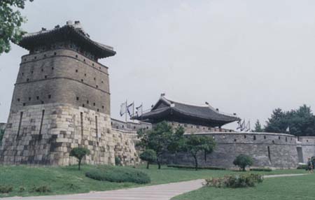 조선시대 1700년대 후반 정조대왕이 부친의 묘소가 있는 수원에 부친을 위해 성곽을 축성(築城)하였다. 당대 최고의 실학자(서양학 계열) 정약용(丁若鏞,Jeong-Yak-Yong)이 서양식 축성(築城) 기술(거중기(擧重器) - 바위를 들어 올리는 기계)을 동원하여 거대한 돌로 만든 성곽을 쌓았다. 아쉽게 그 華城을 침략하여 華城의 방어 능력을 시험하는 전쟁은 없었지만, 그 가치와 아름다움을 높게 평가하여 유네스코 세계 문화 유산으로 1997년 지정 받았다.