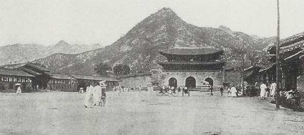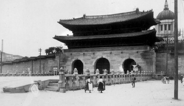フングリェムンを壊してグンゾングムンの前に朝鮮総督府建物を建設する日本軍.
