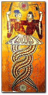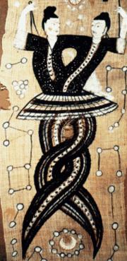 中国三皇の女媧と伏羲 (コンパスと直角定規を持っています)