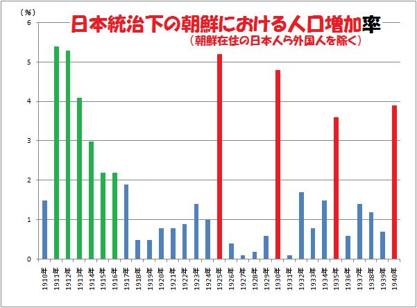 韓国併合の直後の増加率が高いのは分かったけど、その後もなぜか高い年があるわね?(赤の棒グラフ)